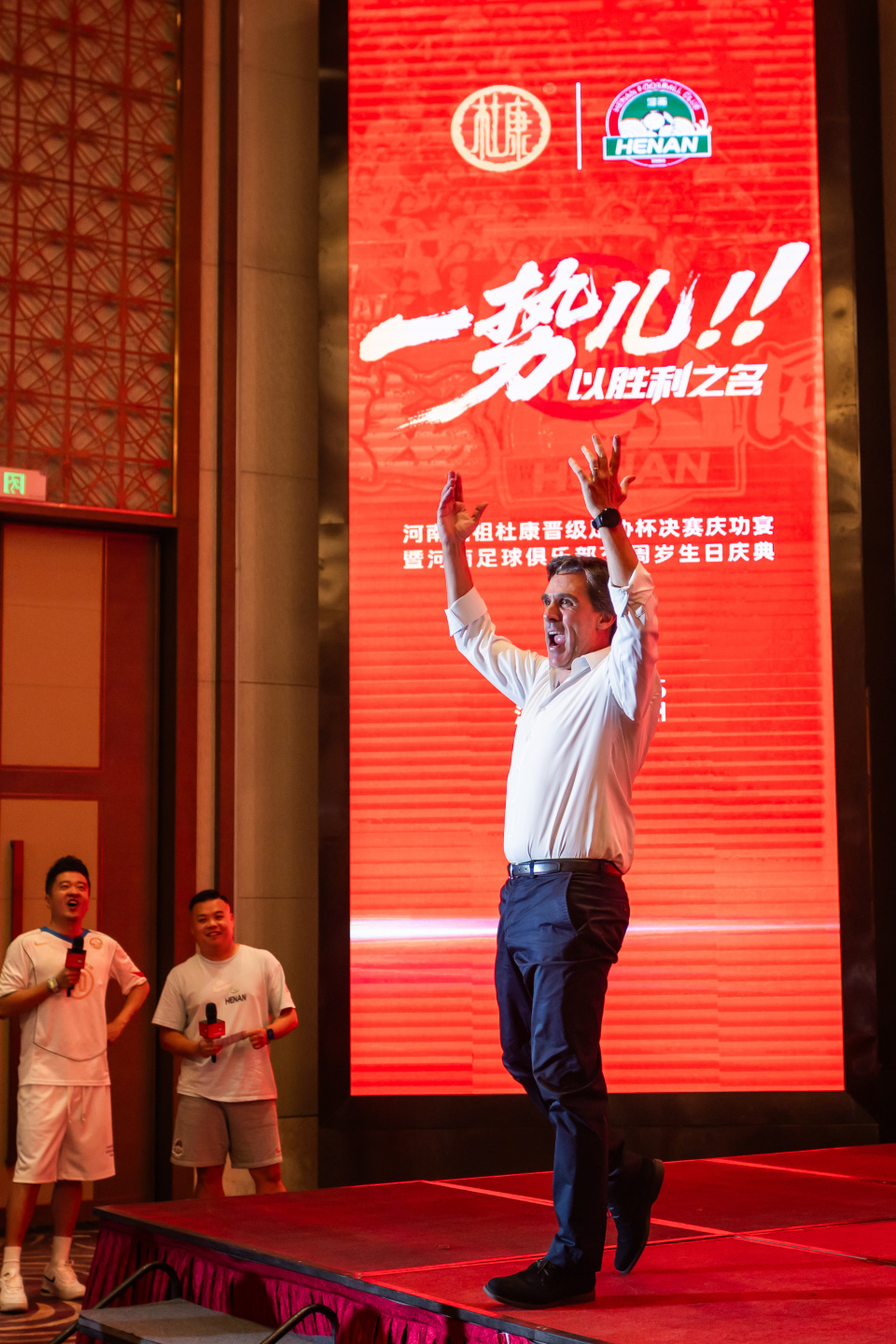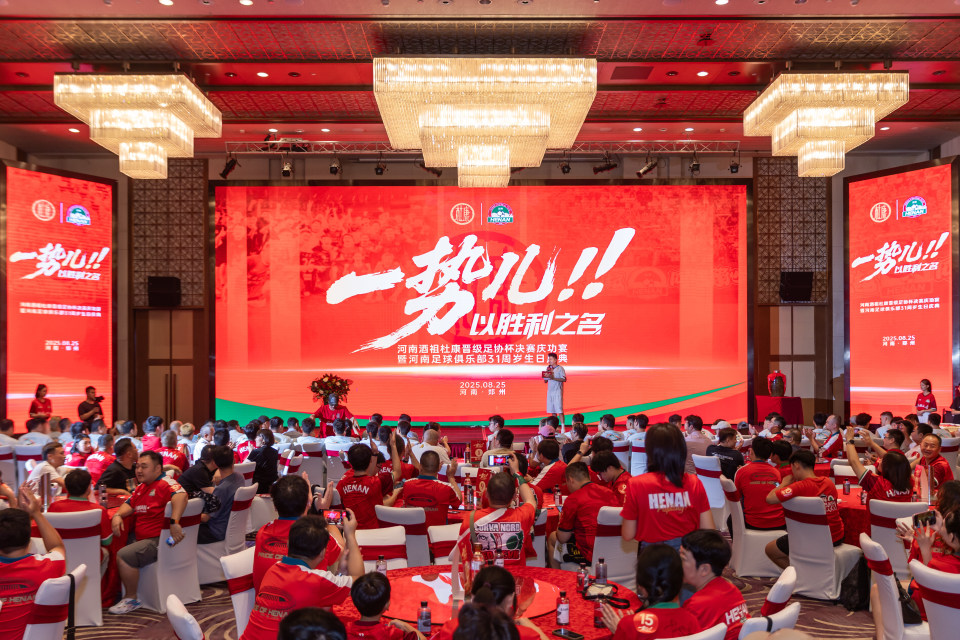 8月25日晚,“一势儿!以胜利之名”河南俱乐部酒祖杜康队首次晋级中国足协杯决赛庆功宴暨河南足球俱乐部31周年庆典在郑州举行。河南足球俱乐部体育总监贝拉、主帅拉莫斯,洛阳杜康高管及数百球迷齐聚一堂。