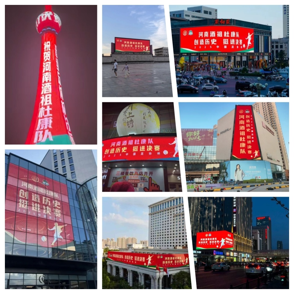 回溯8月19日晚,河南酒祖杜康足球队客场击败成都蓉城,首度闯入足协杯决赛,喜讯迅速传遍全网。作为球队2024-2025赛季冠名商的酒祖杜康随即启动多维度品牌应援计划。在地标点亮方面,杜康联合俱乐部发布官方应援画面,登陆郑州二七商圈亚细亚卓悦城、洛阳应天门等核心地标大屏,还覆盖平顶山、南阳等全省多地市大屏,红色应援画面成城市风景线,引发市民打卡。各地市场应援讯息刷屏,将祝贺声浪传遍街头巷尾,彰显杜康与球队并肩决心,激发河南人的认同感与骄傲感。